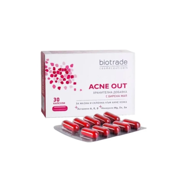 Акне аут хранителна добавка капсули за здрави коса, кожа и нокти х30 Biotrade