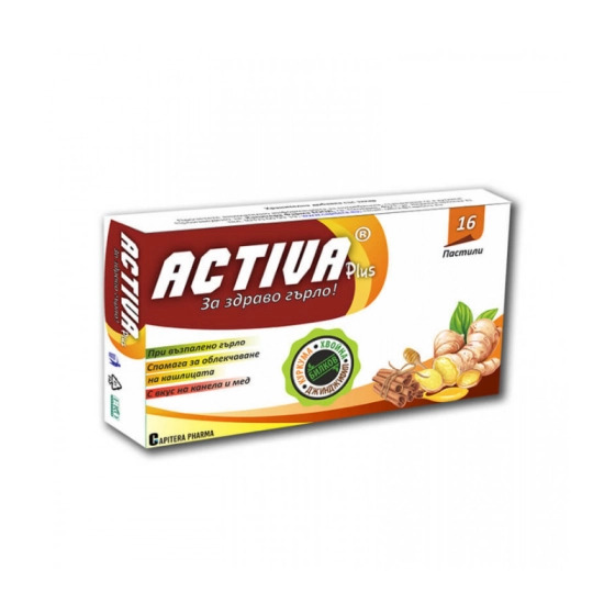 Актива плюс джинджифил + мед + канела пастили при възпалено гърло х16