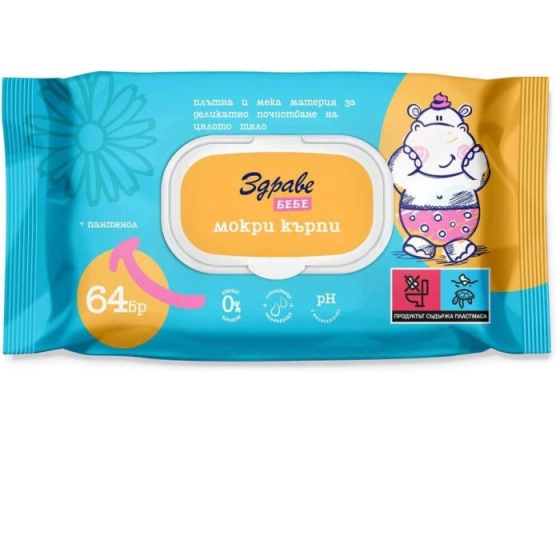 Арома Здраве бебе мокри кърпи с пантенол х 64 бр