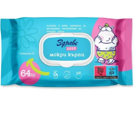 Арома Здраве бебе мокри кърпи с витамин Е х 64 бр
