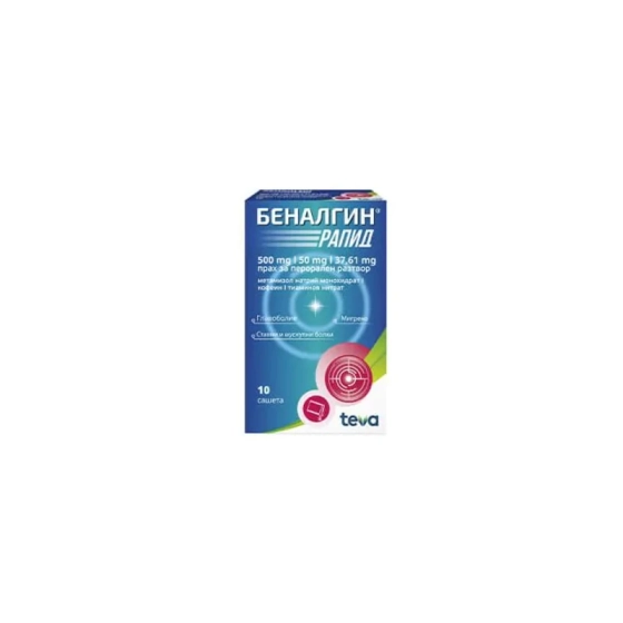 Беналгин Рапид саше при главоболие, мигрена, мускулна и ставна болка х10