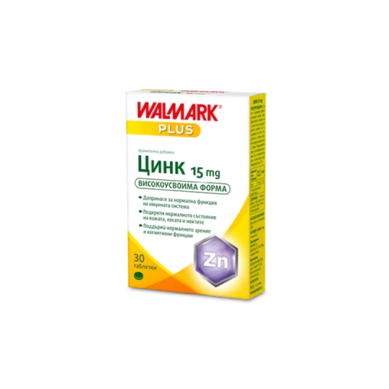 Цинк таблетки за нормална функция на имунната система 15мг х30 Walmark
