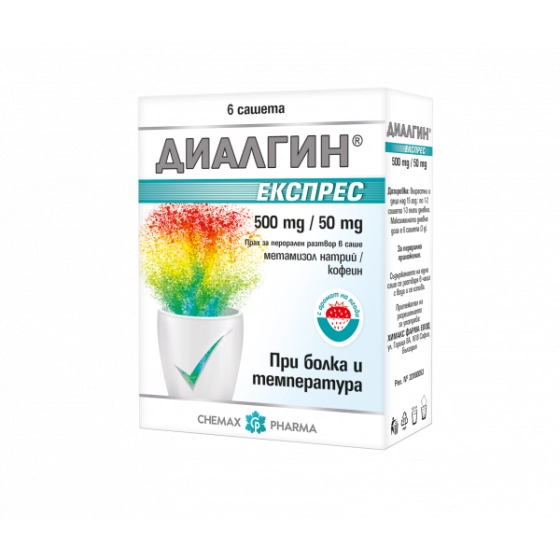 Диалгин Експрес сашета при болка и температура 500мг/50мг х6 Chemax Pharma