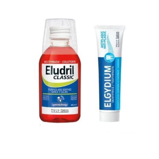 Eludril Classic антибактериална вода за уста 500мл + Elgydium антиплакова паста за зъби 100мл