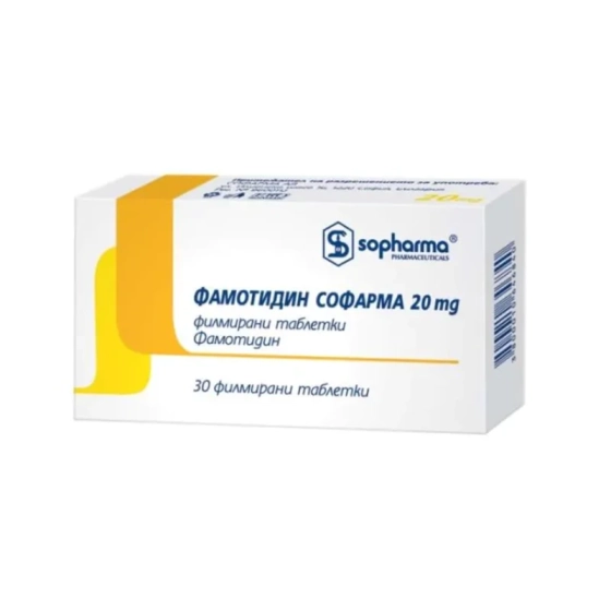 Фамотидин таблетки за облекчаване на стомашни киселини 20мг х30 Sopharma