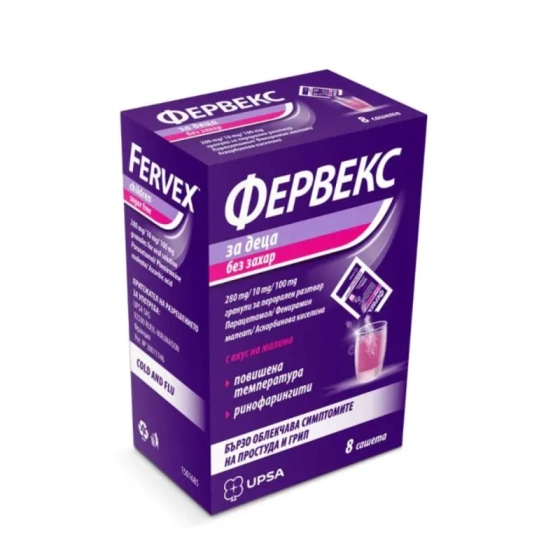 Фервекс за деца без захар сашета при простуда и грип с вкус на малина х8