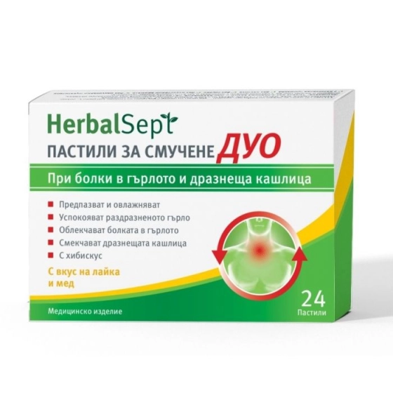 Хербал септ дуо пастили с лайка и мед при раздразнено гърло и кашлица х24