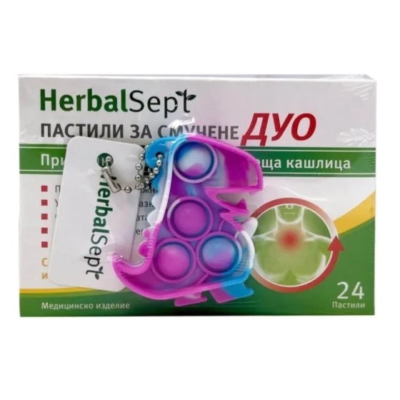 Хербал Септ Дуо пастили с лайка и мед за възпалено гърло и кашлица х 24 + играчка