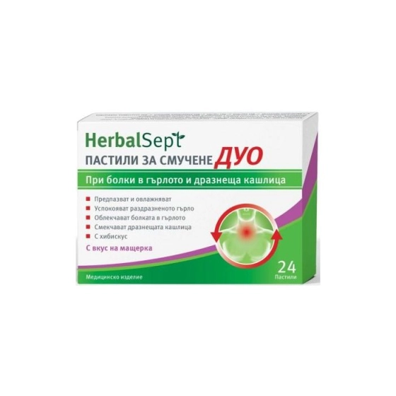 Хербал септ дуо пастили с мащерка при раздразнено гърло и кашлица х24