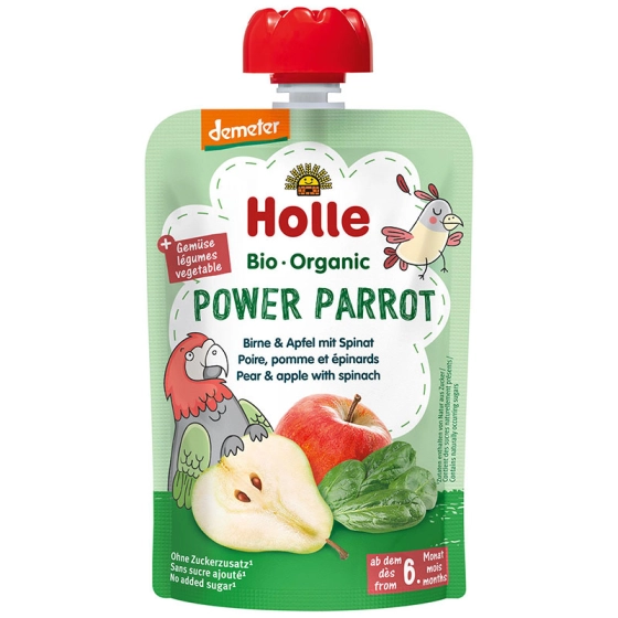 Holle Био пюре пауч с круша, ябълка и спанак 6+месеца 100г