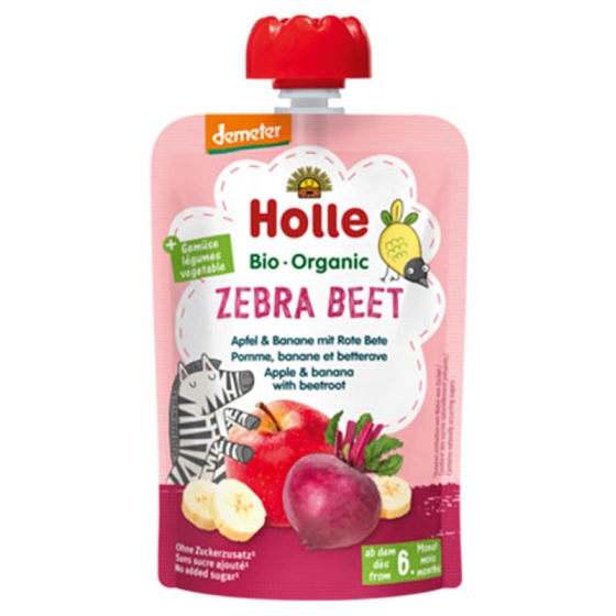 Holle Био пюре пaуч с ябълка, банан и цвекло 6+ месеца 100г