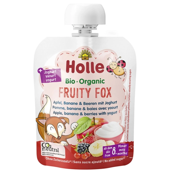 Holle Био пюре пауч ябълка, банан и горски плод с йогурт 8+ месеца 85г