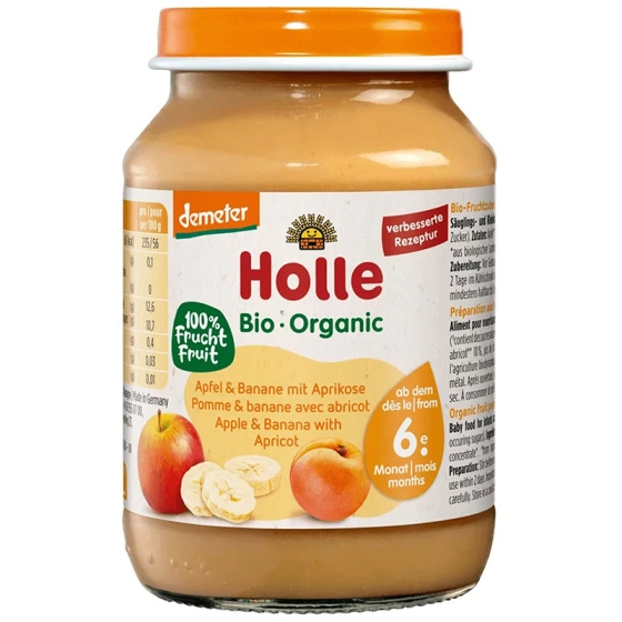 Holle Био пюре с ябълка, банан и кайсия 6+ месеца 190г