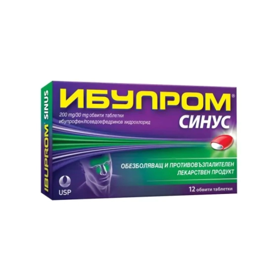 Ибупром синус таблетки при болки в синусите и запушен нос 200мг/30мг х12