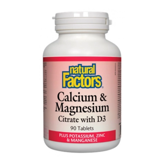 Калций, Магнезий, Витамин D+Калий и Цинк таблетки за здрави кости, стави 526мг х90 Natural Factors