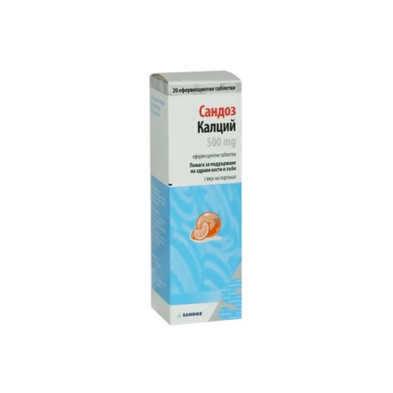 Калций за здрави кости и зъби с вкус на портокал 500 мг x20 ефервесцентни таблетки Sandoz