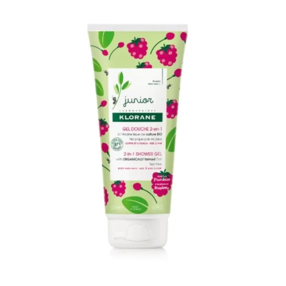 Klorane junior душ-гел 2в1 за коса и тяло с органичен екстракт от овес и аромat на малина 200мл
