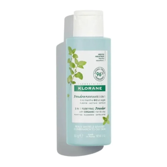 Klorane mint почистваща пудра 3в1 с глина и органична водна мента 50г