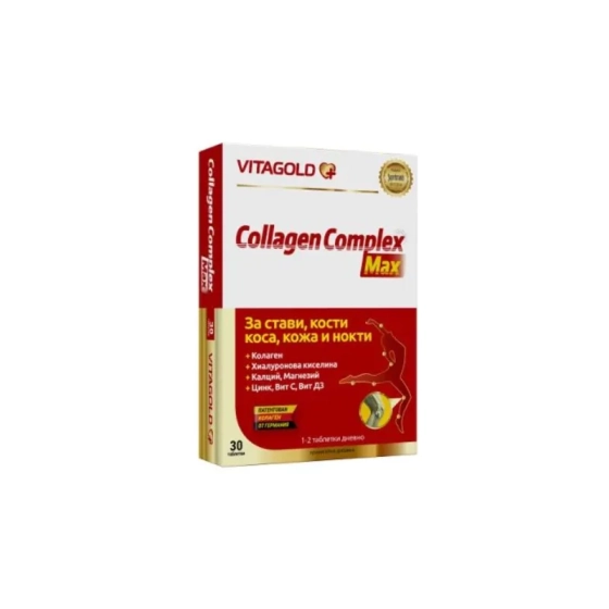 Колаген компелкс макс таблетки за стави, кости, коса, кожа и нокти х30 Vitagold