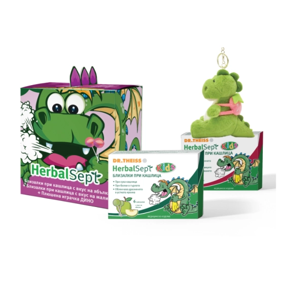 Комплект Хербал Септ Близалки за кашлица Ябълка 6 броя + Близалки за кашлица Малина 6 броя