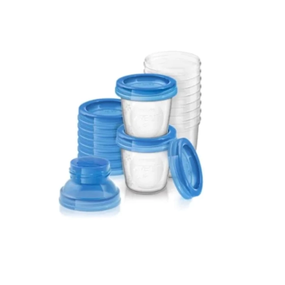 Комплект контейнери за кърма - 10 чаши х180 мл+10 капачки+2бр Адаптори Avent