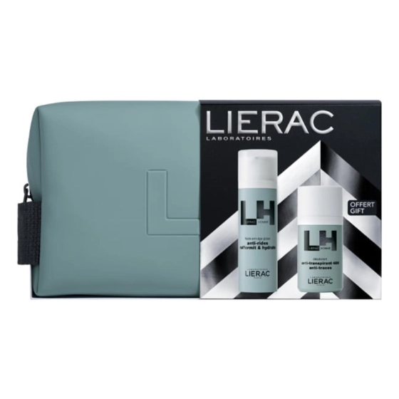 Комплект Lierac Homme Крем против бръчки за мъже 50мл + Рол-он дезодорант 50мл + Несесер