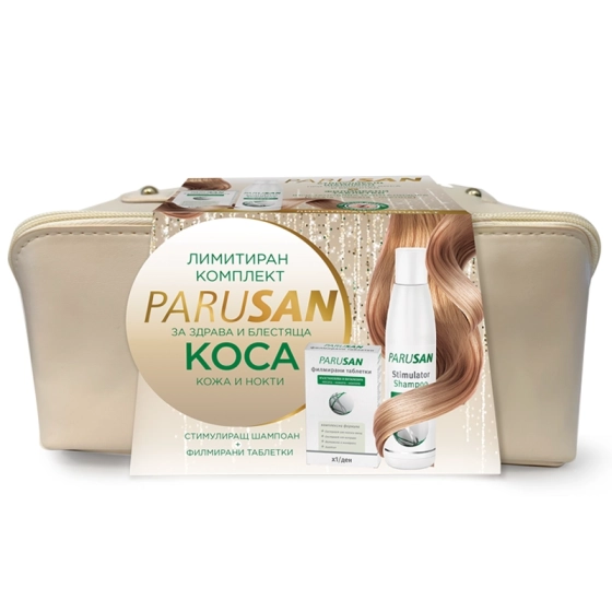Комплект Парусан Стимулиращ шампоан жени 200мл + Таблетки 42 броя + несесер