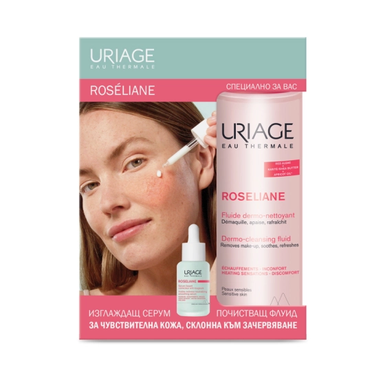 Комплект Uriage Roseliane Изглаждащ серум против зачервяване 30мл + Почистващ флуид 250мл