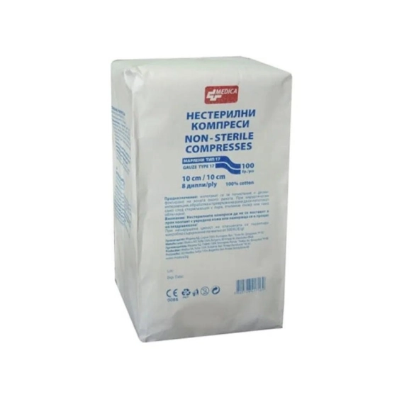 Стерилни марлени компреси 10/10 см 8 дипли х 3 Medica
