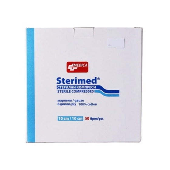 Стерилни марлени компреси 10/10 см 8 дипли х 3 Medica