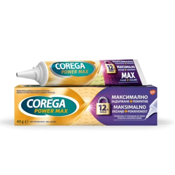 Корега МАКСИМАЛНО ПОКРИТИЕ + ЗАДЪРЖАНЕ Фиксиращ крем за зъбни протези 40гр