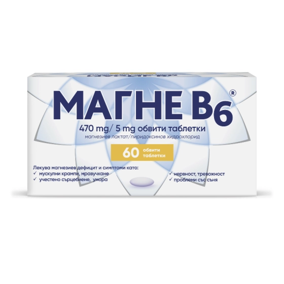 Магне B6 таблетки при мускулно крампи, нервност, безсъние 470мг(екв.48мг mg)/5мг х60 Sanofi