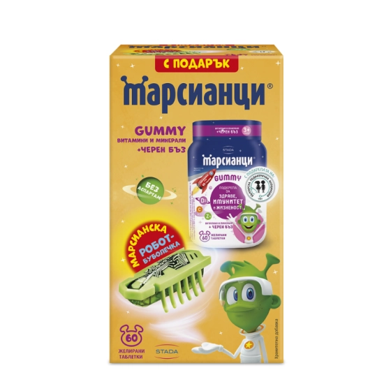 Марсианци гъми Витамини за деца с черен бъз 60 желирани таблетки + Марсианска робот буболечка