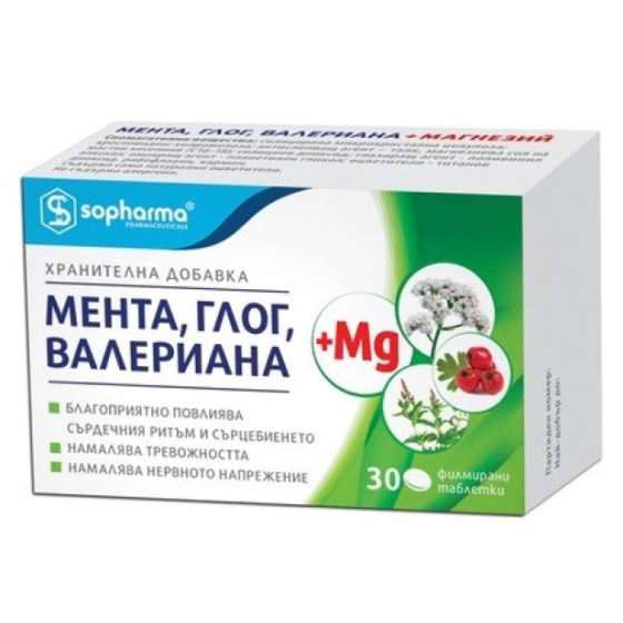 Мента, глог, валериана с магнезий таблетки при стрес х30 Sopharma