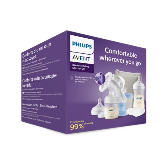 Начален комплект за кърмене с ръчна помпа за кърма Natural Motion Avent
