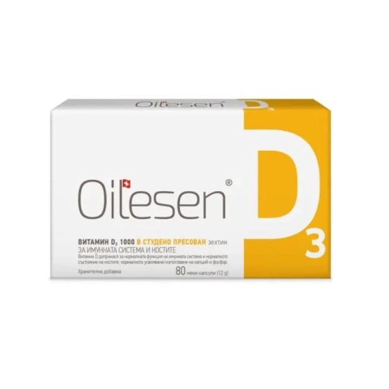 Oilesen витамин D3 меки капсули за имунитет, за здрави кости и зъби 1000IU х80