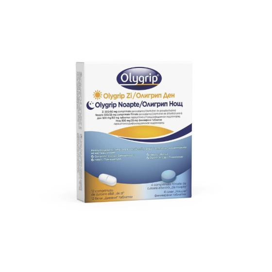 Олигрип Ден и Нощ таблетки при грип и настинка х16