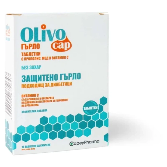 Оливокап Прополис + Витамин C пастили за болки в гърлото без захар х 16