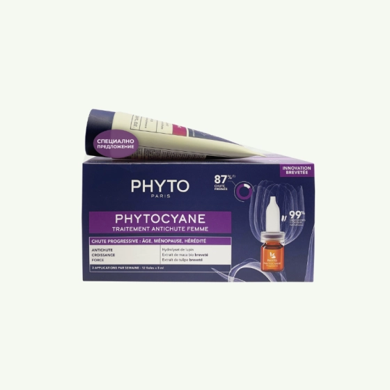 Phyto Phytocyane Комплект - Терапия за прогресивен косопад и Шампоан, 12 x 5 + 100 мл