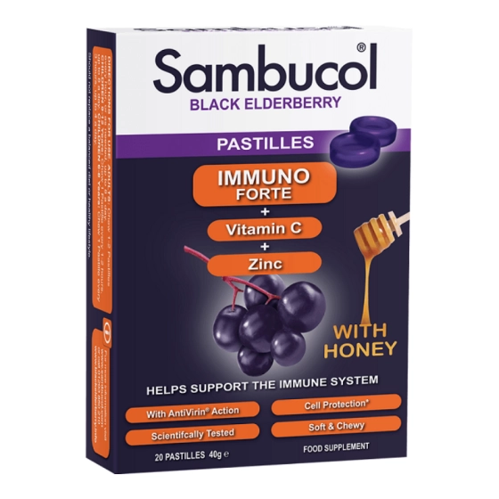 Самбукол имуно форте с антивирин + С + ZN х 20 пастили