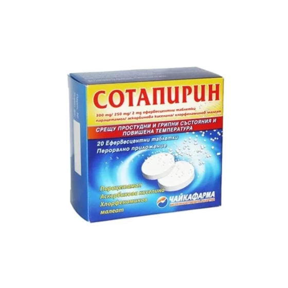 Сотапирин ефервесценти таблетки при настинка и грип х20