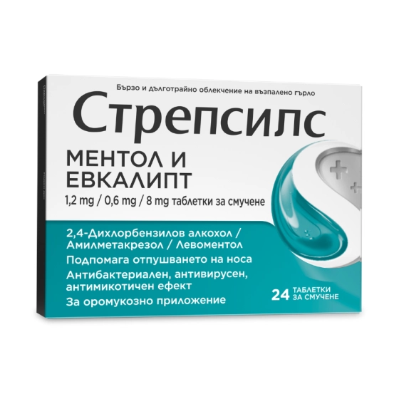 Стрепсилс ментол и евкалипт при възпалено гърло х24