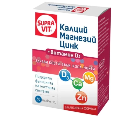 Суправит таблетки Калций Магнезий Цинк + Витамин D3 за здрави кости, зъби и нокти х30