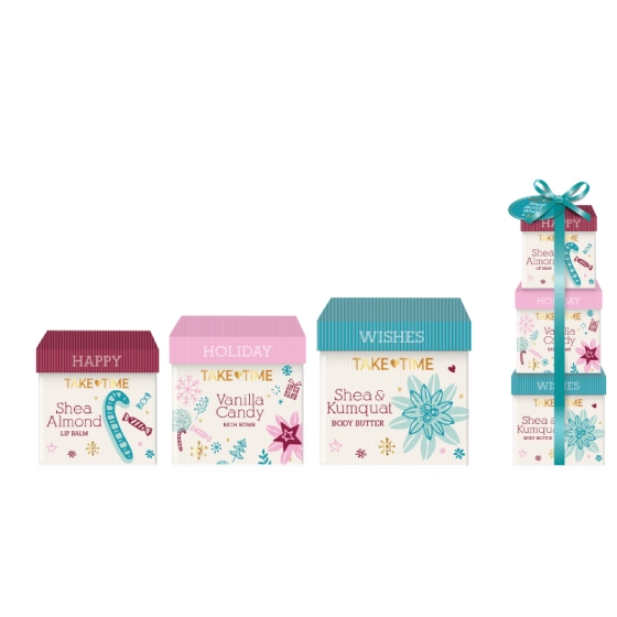TAKE TIME Празничен сет Балсам за устни + Бомбичка за вана 40г + Крем за тяло 50мл