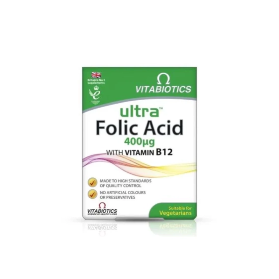Ултра Фолиева киселина с витамин В12 капсули по време на бременност х60 Vitabiotics