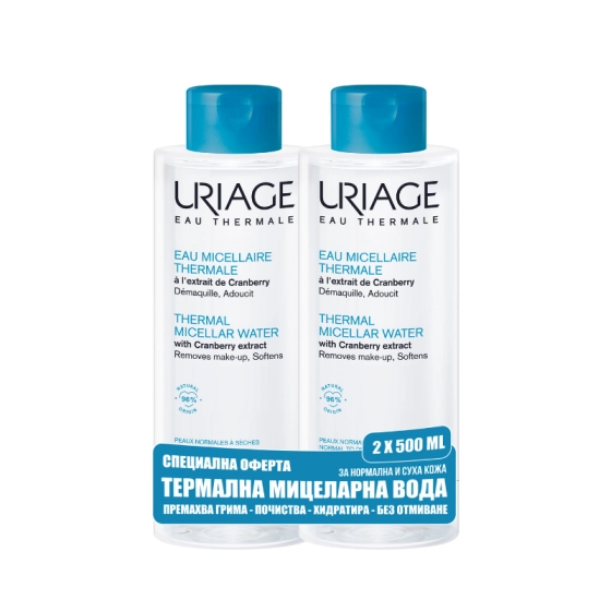 Uriage duo thermale почистваща мицеларна вода за лице за нормална и суха кожа 2х500 мл