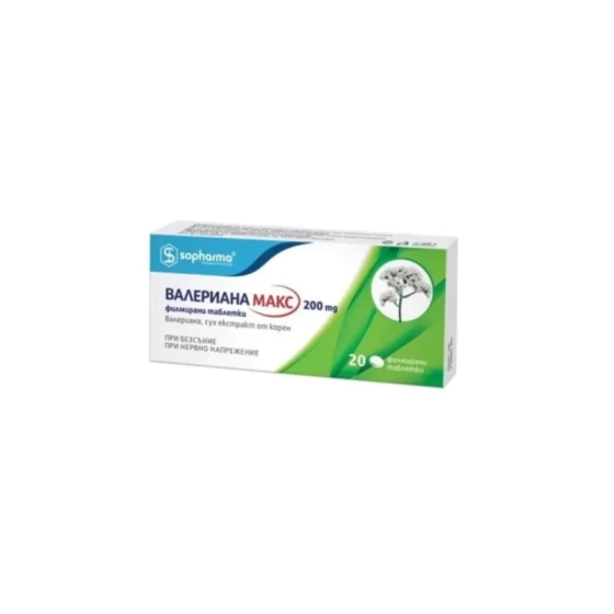 Валериана Макс таблетки при тревожност 200мг х20