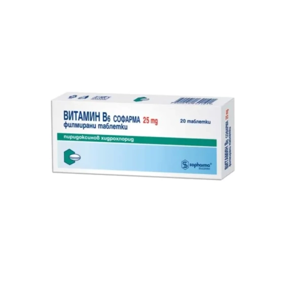 Витамин B6 таблетки при анемия, неврологични нарушения, себореен дерматит 25мг х20 Sopharma