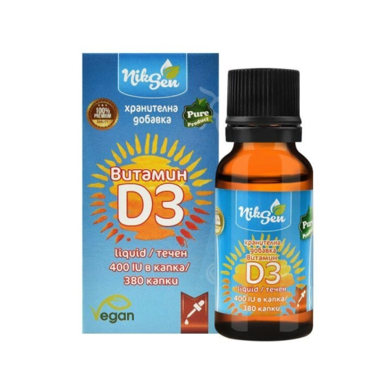 Витамин D3 течен за кости, зъби и мускули 400 IU в капка 380 капки Никсен