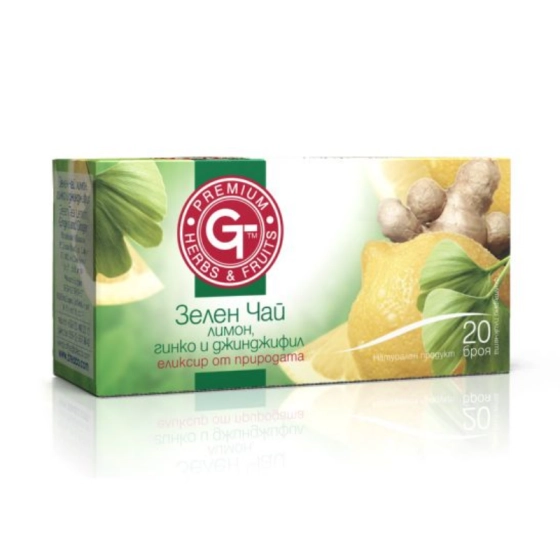 Зелен чай с лимон, гинко и джинджифил пакетчета х20 GT